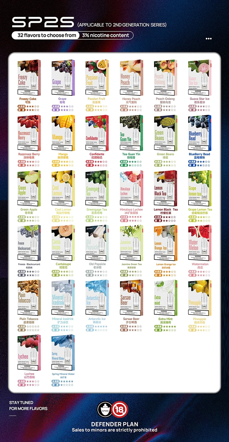 如果您正在尋找一個可靠、方便且滿足的電子煙體驗,不妨選擇我們的SP2S菸彈。讓煙彈成為您日常生活中的伴侶,帶給您無盡的滿足和放鬆。